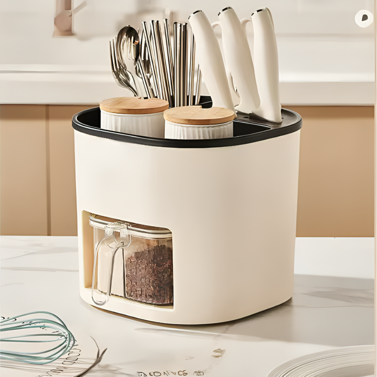 - مع أداة تنظيم أدوات المطبخ متعددة الاستخدام، حولي سطح المطبخ إلى مساحة مرتبة ومرتاحة.